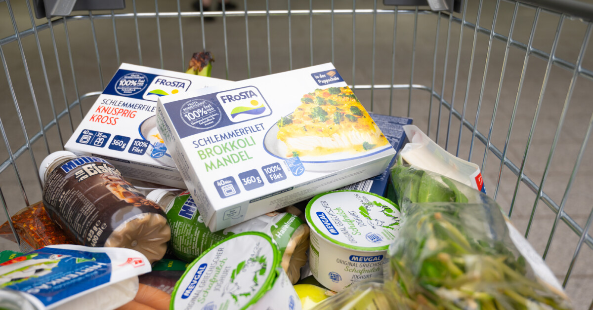 'post_title' => 'Frosta fish, fresh vegetables, yoghurt and cheese, shopping cart with food, buying grocery, supermarket, increase prices, inflation, Trier, Germany',