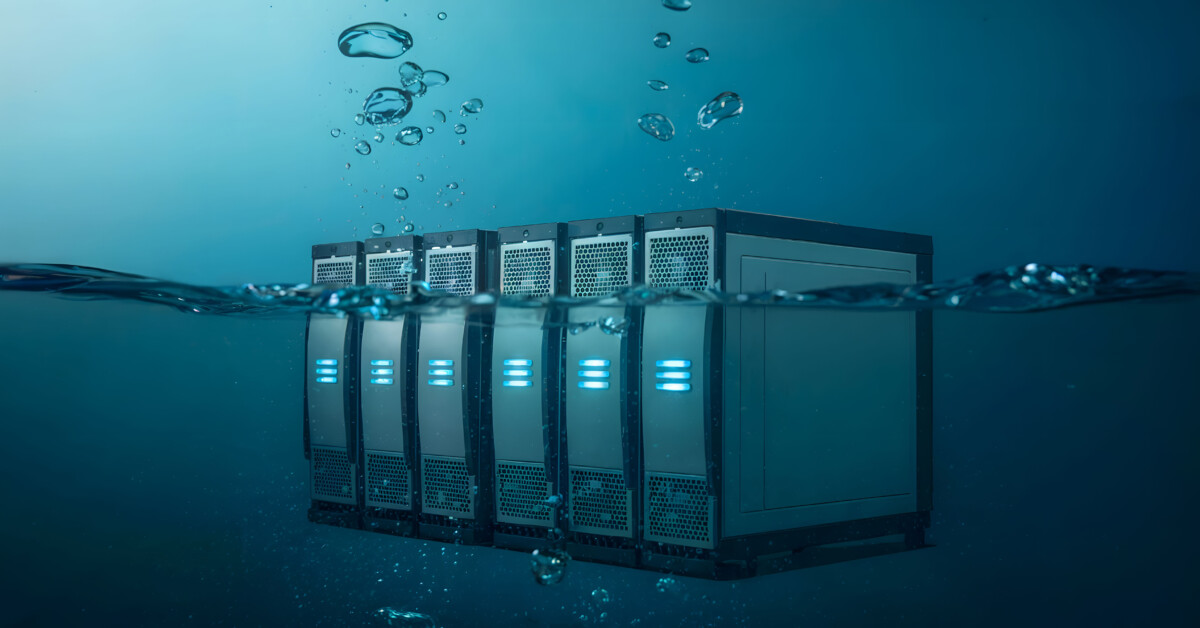 'post_title' => 'Realistic Underwater Server Rack Floating in Deep Blue Water with Glowing Lights and Rising Air Bubbles',