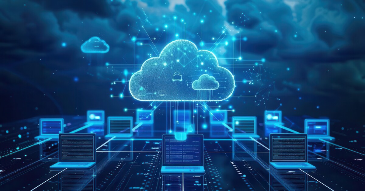 'post_title' => 'Cloud Computing A cloud icon connected to various devices like laptops, tablets, and servers through a network of lines, with clear space around the graphic for text',