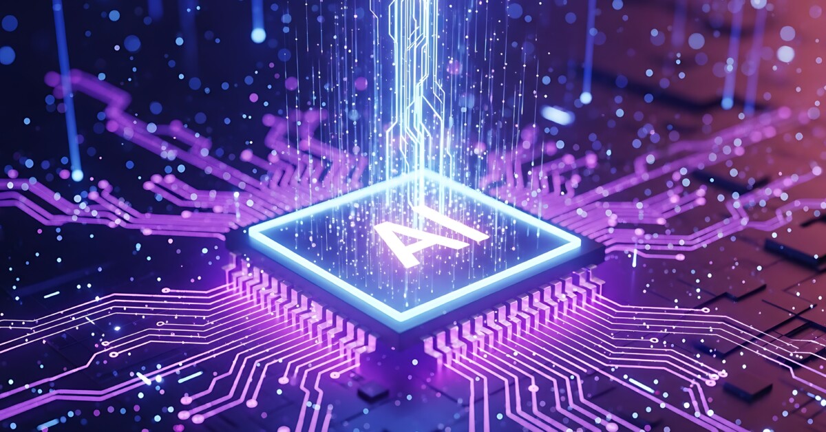 'post_title' => 'Ultra highresolution, professional studio photography of abstract glowing blue and purple ai chip with intricate circuitry and light trails, representing artificial intelligence and technology',