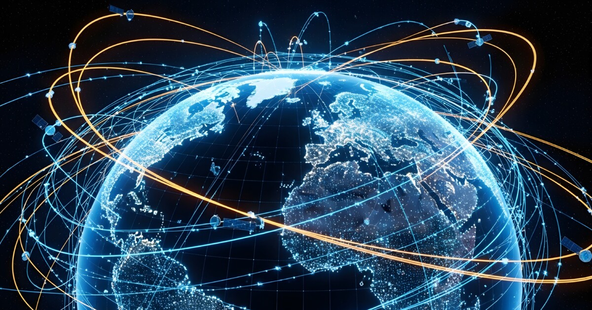 'post_title' => 'Global satellite network and communication technology. Worldwide data transfer and connectivity. Abstract illustration of the Earth with digital orbiting satellites and data links in space.',